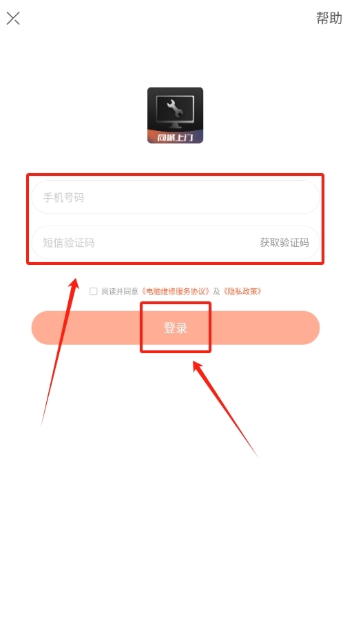 1. 开启极客修电脑维修软件,于登录界面找寻手机号输入框,填入号码后获取验证码进行登录。