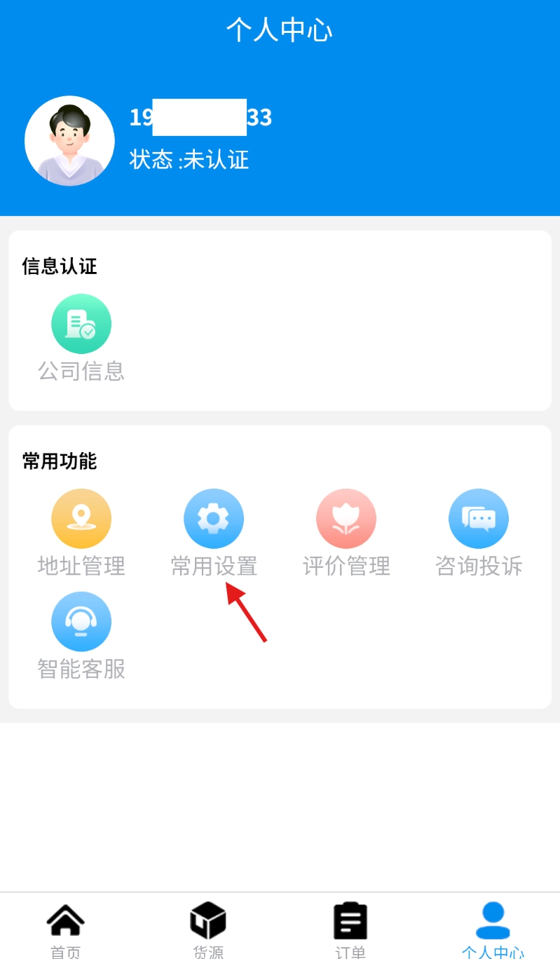 2、在个人中心页面里,找到并点击 “常用设置” 选项,进入设置操作界面。