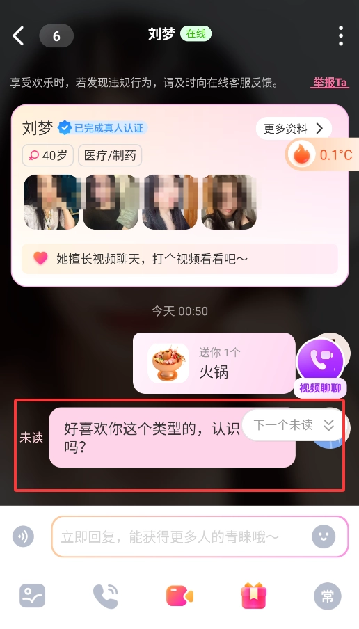 4、安全防护体系:包含实名认证、隐私设置、举报屏蔽等功能,构建安全可靠的交友环境。