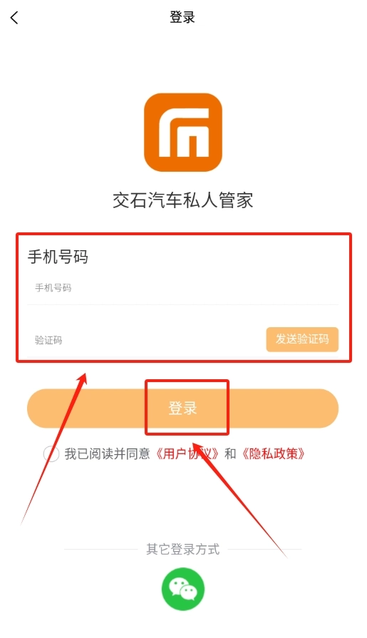 2、在登录界面,输入自己的手机号,获取验证码填进去就能登录。