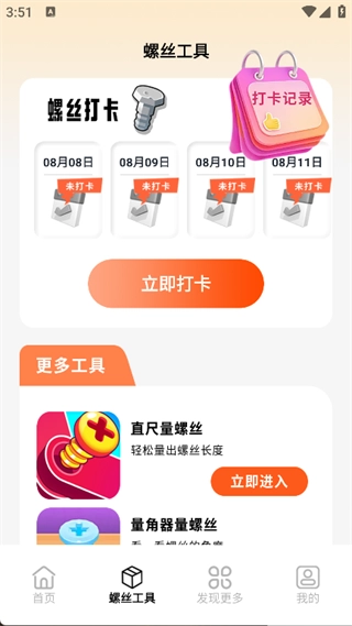 4. 轻点页面下方的“发现更多”图标,就能看到螺丝账本、螺丝笔记以及来画螺丝等功能。