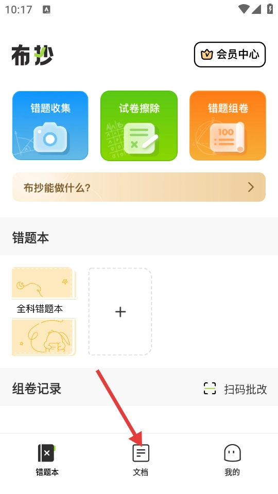1. 首先打开,接着点击底部的【文档】,随后进入资料管理页面,在此页面查看复习分析以及文档分类。