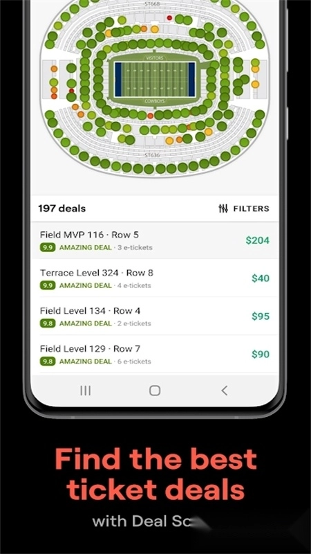 SeatGeek最新版本为保证用户买到性价比最高的门票,推出了交易得分系统。每笔交易依据价值高低进行颜色标记,从最优到最差清晰可辨。如此,用户能快速判断哪些门票性价比更高,进而避免受高价或低质量门票的影响。