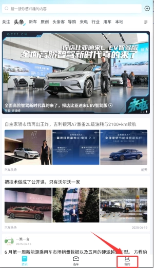 1. 打开汽车头条,点击底部导航栏中的“我的”图标,即可进入账户管理页面。