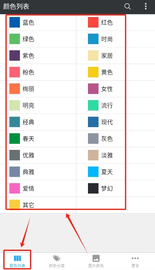 1. 开启配色库软件,进入首页后,即可挑选一款自己心仪的主颜色。