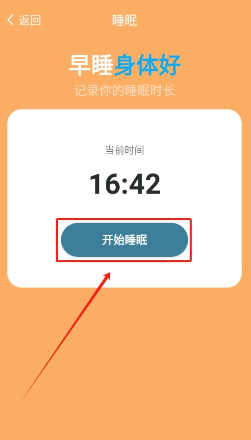 2、点击 “开始睡眠” 按钮,就能记录下你睡觉的具体时间。