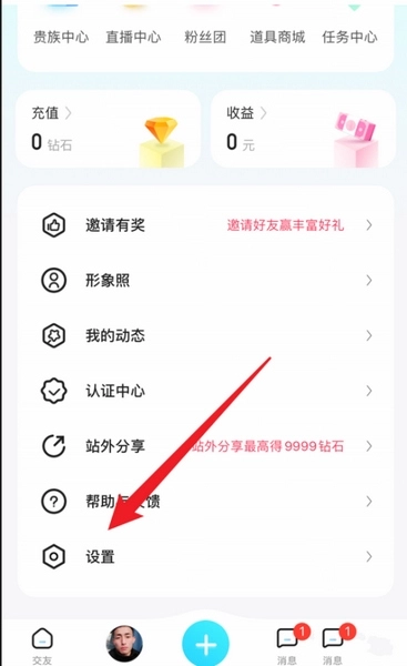 1、在喜弟【我的】页面,找到“设置”,点击它。
