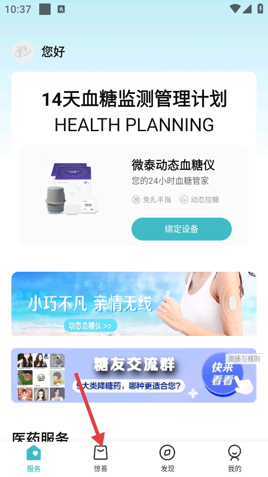 1. 开启应用,轻点底部的【惊喜】选项。