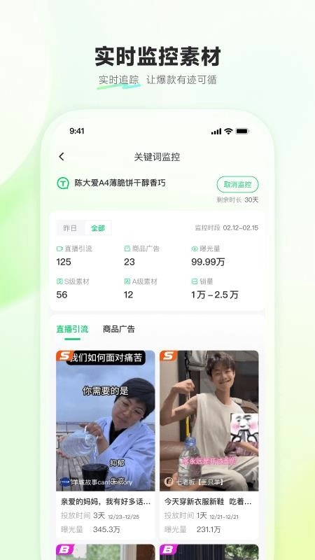 用户可以精准洞察热门直播的素材资源,助力用户深入洞察,实时获取更多隐藏的素材。