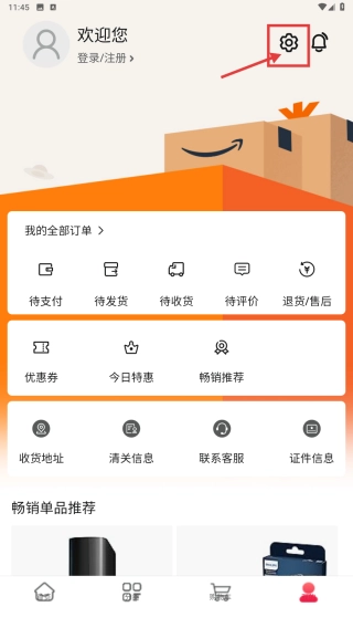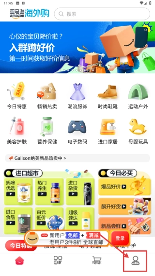 1. 开启亚马逊海外购应用程序,轻点底部的“我的”选项,进而进入个人中心页面。