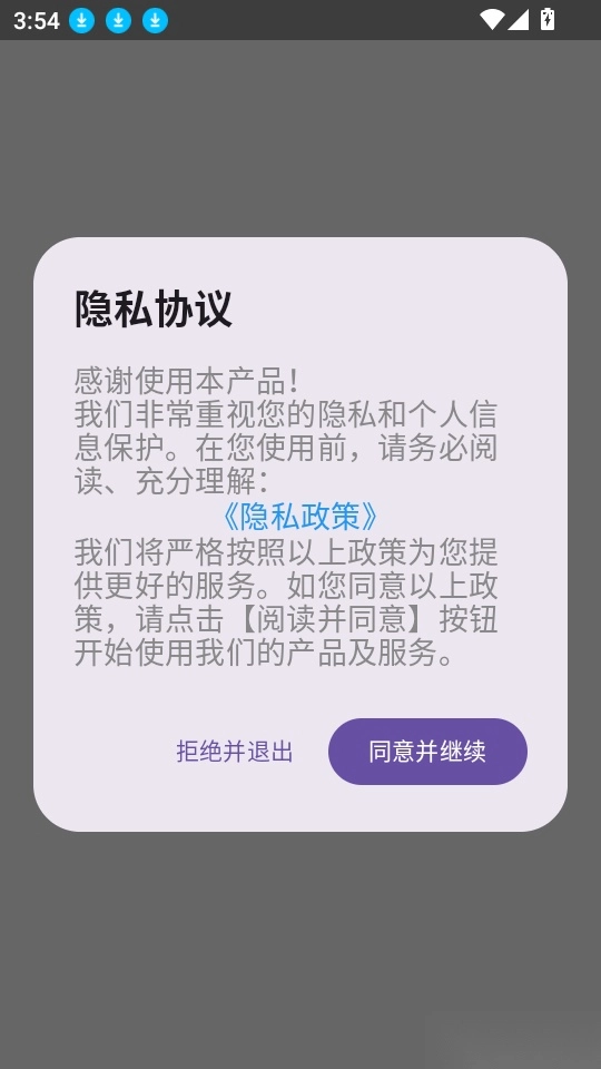 1、首先打开应用点击“同意并继续”按钮进入中。