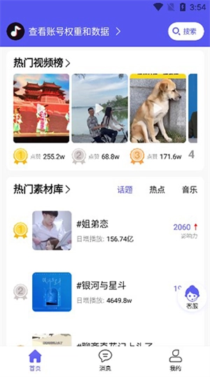 2、往下拖动,可以看到热门素材和视频内容。