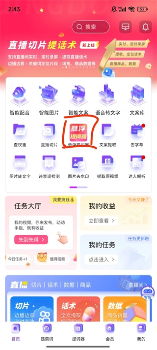 1、在软件首页找到悬浮提词器功能。