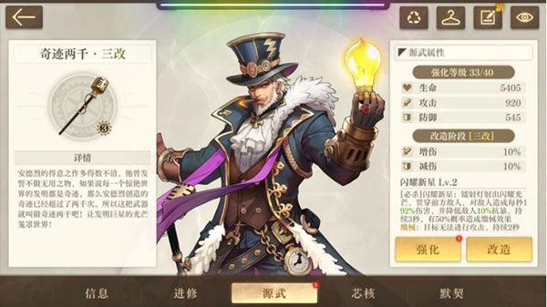 源武作为角色专属武器,通过强化提升角色属性,而改造可以加强必杀技威力。