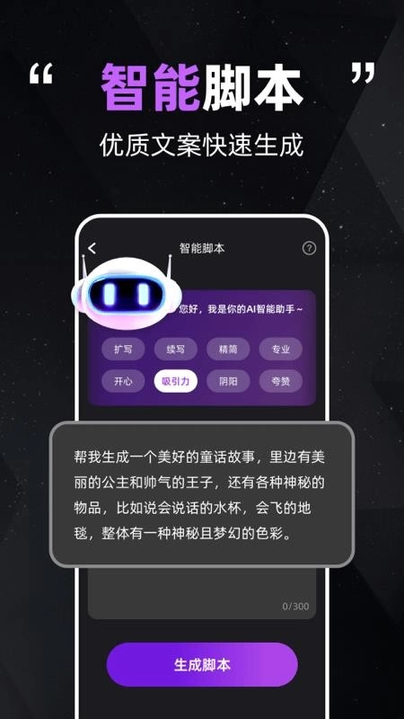 帮助用户快速生成需要的视频文案脚本,能够让你对带货的商品来进行丰富的表达。
