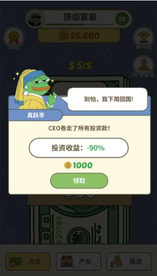 3、根据玩家资产规模解锁煎饼大王、地产大亨等称号,特殊成就“空手套白狼”需在零本金条件下完成企业并购。