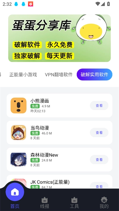 2025年蛋蛋分享库最新版汇聚了海量软件资源,包含影视类、小说类、漫画类等多种类型。这里面的每一款软件不仅都是正版,而且用户能免费使用,同时还都配有详细介绍与截图,方便用户快速了解软件功能。该分享库更新速度极快,始终保持最新版本。感兴趣的朋友,就来289网吧!