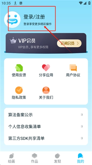 1. 轻点右下角“我的”,再点击“登录/注册”