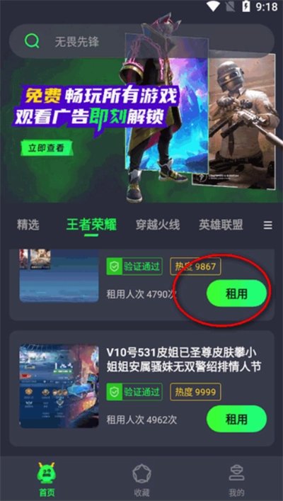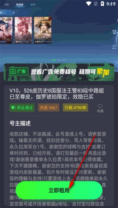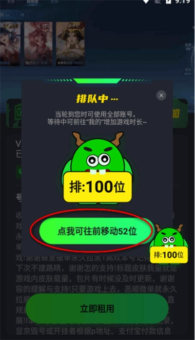 5、需要排队才可以租号,看广告可以获得比较好的排名。