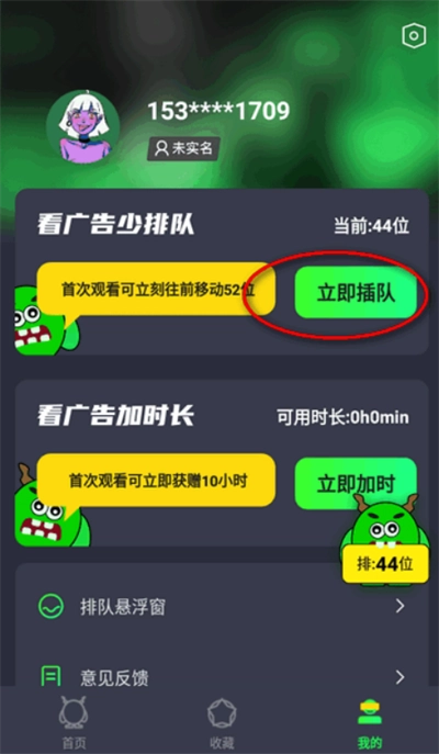 6、看广告可以少排队,支持插队和加时。