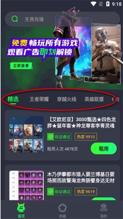 2、打开软件后进入首页,选择你想要租号的游戏。