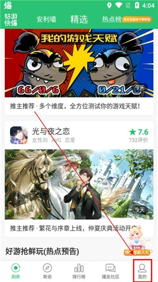 1、在好游快爆游戏盒的首页中,点击右下方我的选项。
