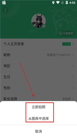 5、选择下方任意方式上传新头像,即可更换个人头像。