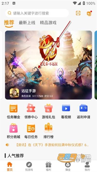 首先到289网安装乐游天地并打开