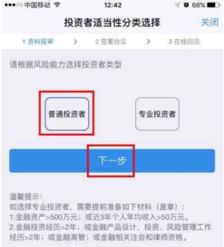 9、投资者适当性类型选择:请选择“普通投资者”,若为“专业投资者”,请联系我们线下办理。
