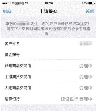 16、开户申请成功,显示开户进度界面。