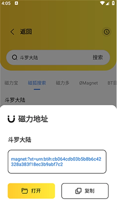 4、点击对应的磁力资源,可以选择打开或者复制选项。