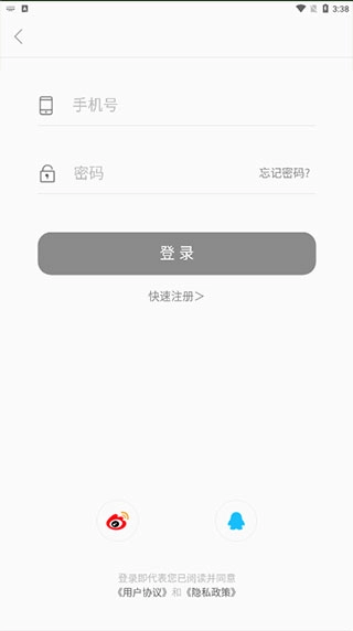 1、在本站安装,运行兰韵翁源,使用手机号+密码、qq、微博等方式进行登录: