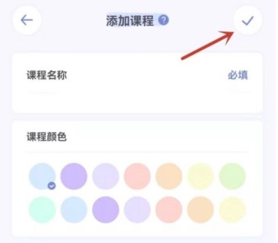 4、进入新页面后,进行课程名称、上课周数等设定后,点击红箭头所示位置,完成课程添加。