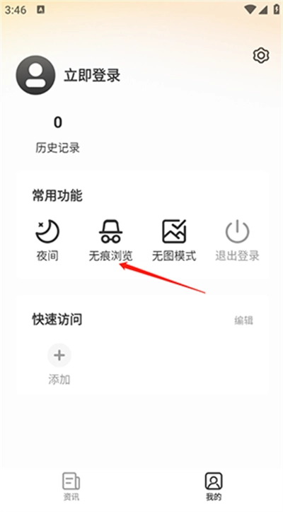 2、点击“无痕模式”。