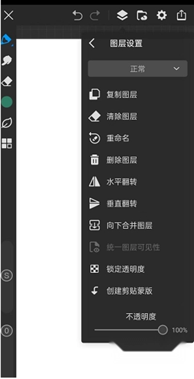 3.上方的工具栏主要就是有撤回、图层和系统设置几个功能,撤回和图层是用的比较多的,特别是图层工具中,还能对每个图层进行很多的操作,比如锁定图层、复制图层、新建图层、合并图层等等,是需要重点学习的部分哦。