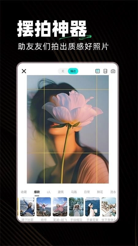 涵盖相机拍照模板与素材丰富,体验酷炫的拍摄;
