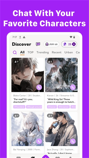 丰富角色场景体验:大量角色与场景,从日常角色到奇幻设定,从生活场景到特殊情境,让用户在不同的虚拟环境中与AI展开互动,增强代入感。