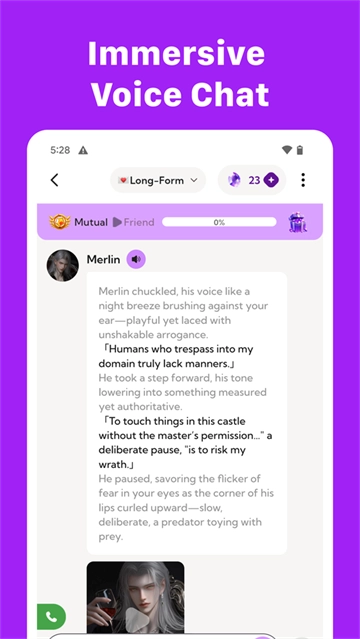角色剧情的动态演进:专属角色具备动态情节与事件等剧情设定。在持续深入的聊天过程中,角色会历经各式各样的事件,呈现出丰富多样的动态转变,使互动更富故事韵味。