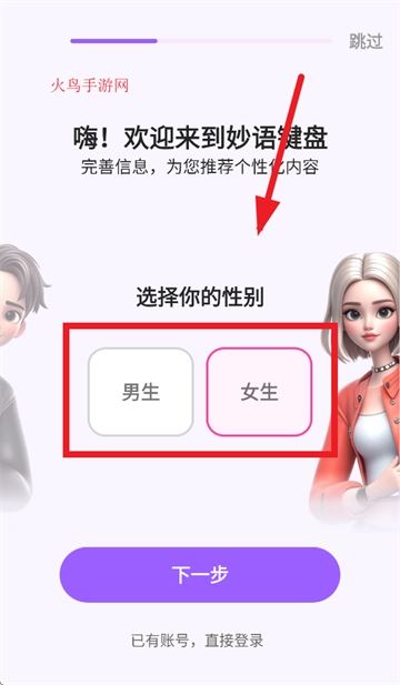 选择性别,点击下一步