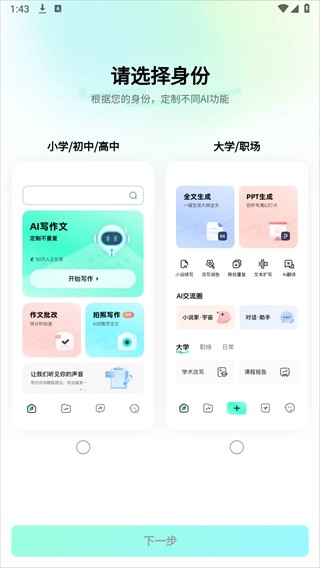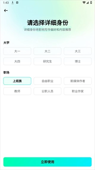 2、进入之后根据自身学生或者职场人员的身份进行选择。