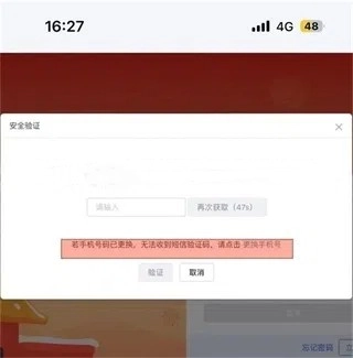 2、根据页面提示输入身份证号及登录密码,在跳出的安全验证页面选择“更换手机号”。