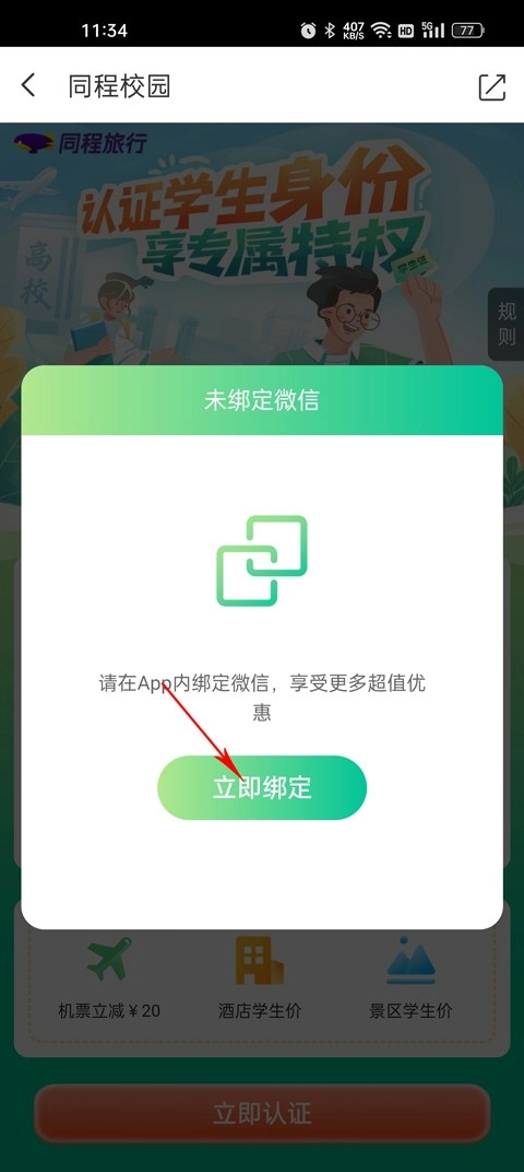 5、认证之前,需要绑定手机微信,可以享受更多超值优惠。