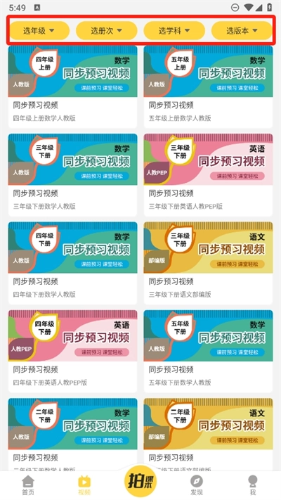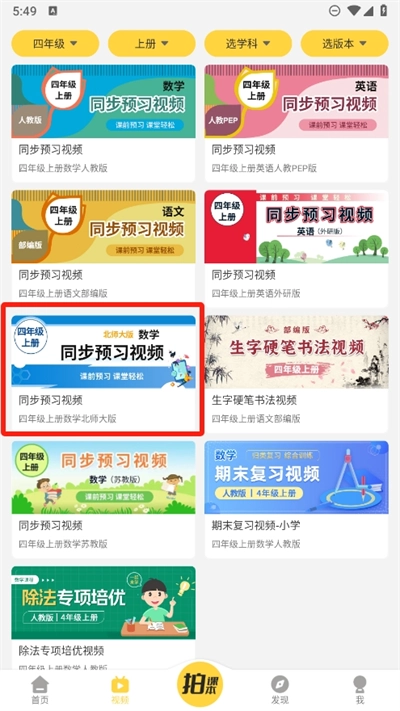 3、选择好自己想要查找的学科内容条件后,直接进入软件可以搜索到相关的视频内容点击进入。