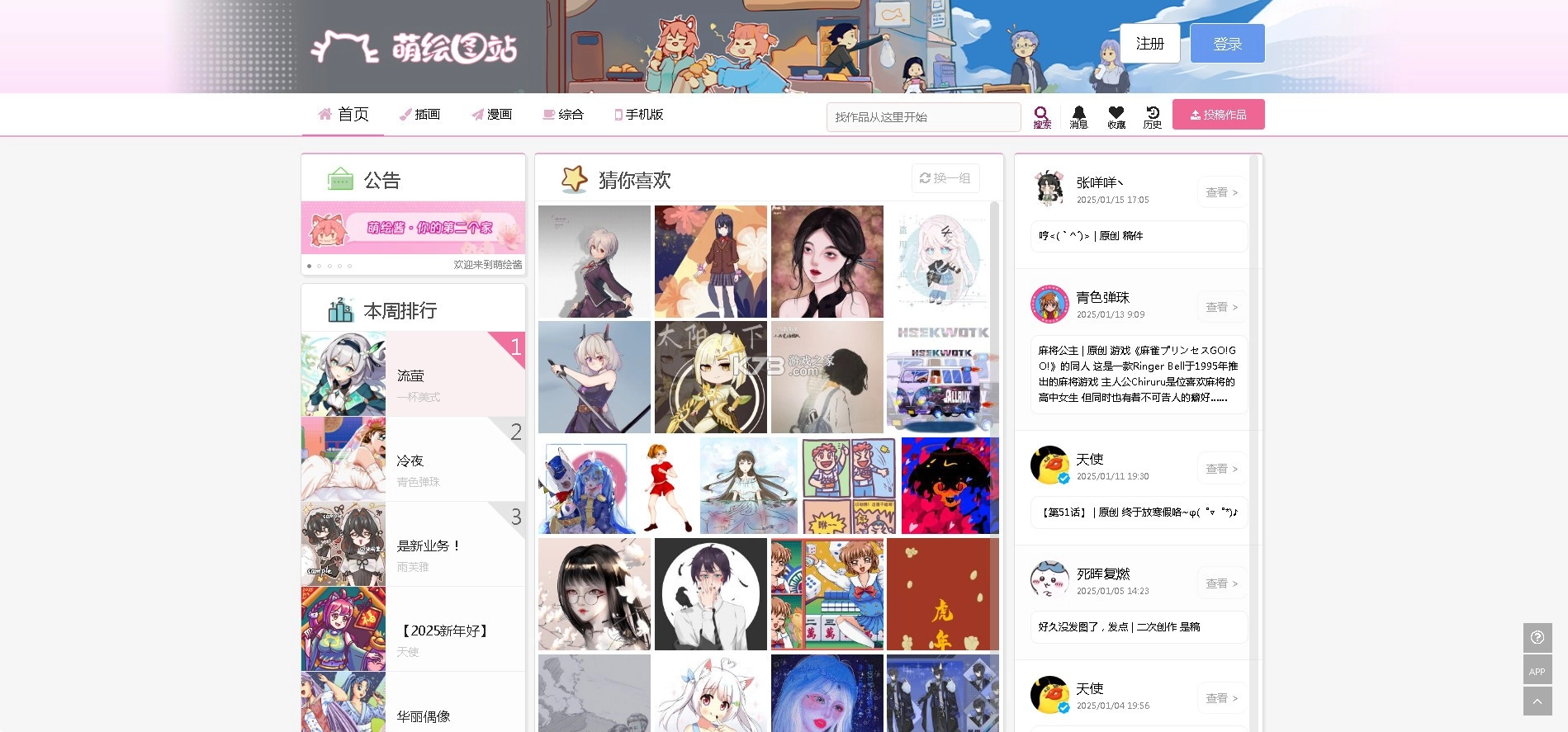 萌绘图站是国内开放式画作分享交流平台,您不仅可以投稿画作,也可以制作表情包、游戏周边,玩梗等。配合本站特色贴幕将更具趣味性。由于目前处于起步阶段,问题较多欢迎反馈 !