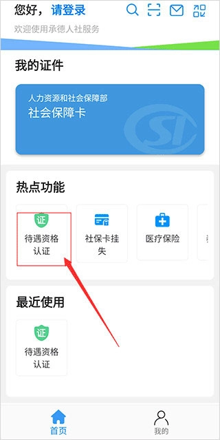 2、然后在主页面点击选择“待遇资格认证”,点击进入;