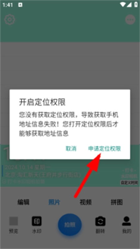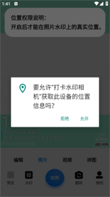 4、能够实时获取用户所在地的天气信息,并在水印中显示,还能了解当时的天气状况。