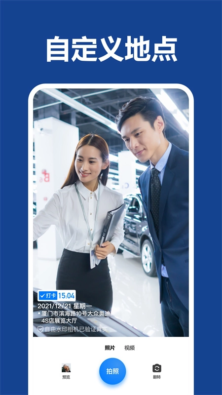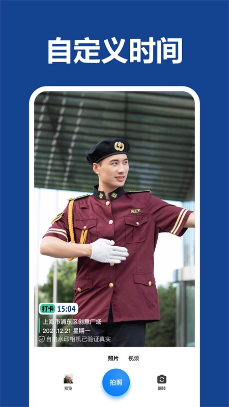 2、个性化水印:支持自定义水印,水印内容包括时间、地点、天气等实时信息。
