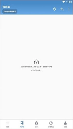8、点击界面下方的待办集切换至“待办集”界面,用户们能够在这创建新的待办集来添加所有未完成事情的计时。同样,待办集也是长按进行删除。