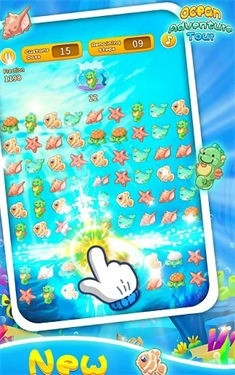 海洋探险之旅是一款以海洋为背景、采用卡通风格的消除类游戏。在游戏中,玩家要借助经典的三消玩法,去挑战各式各样的关卡。其核心目标为,在规定的步数之内,完成各不相同的任务,而且只有获取足够高的分数,方可顺利通关。