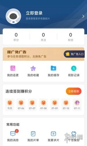 2、在个人中心的顶部位置找到并单击“立即登录”功能。